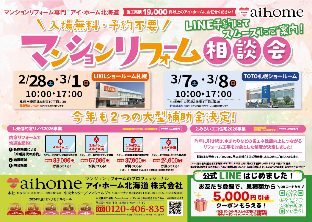 🌸2/28(土)・3/1(日)10:00~17:00 LIXILショールーム札幌 (Googlemap)